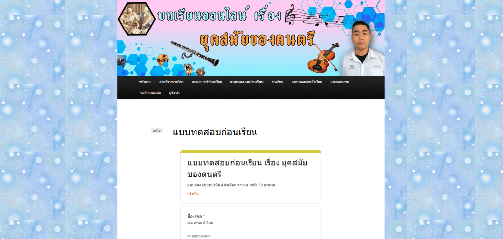 4.ให้ท่านกรอกแบบสอบถามความพึงพอใจที่มีต่อบทเรียนออนไลน์ วิชาดนตรี เรื่องยุคสมัยของดนตรี